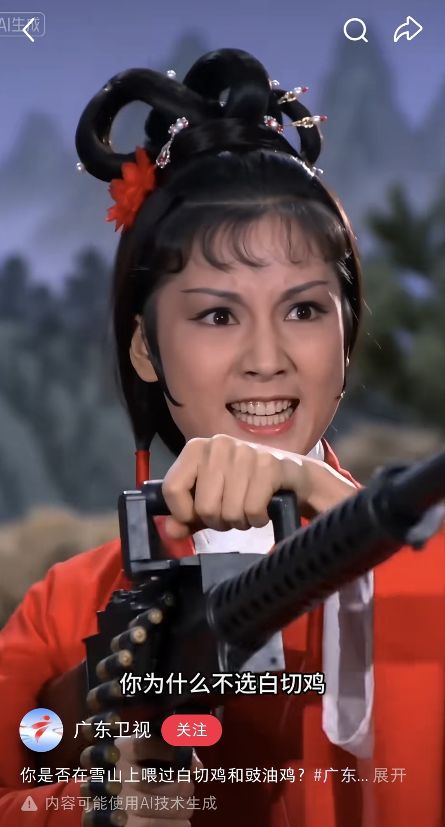 “你可曾在雪山救过一只狐狸?”“你是那只狐狸?”“我是那只酱板鸭!”AI生成短视频“雪山救狐狸”系列近日火爆全网。荒唐又带点无厘头的对话勾画出收罗演义式的回转剧情,邵氏武侠电影的守旧滤镜则带来一种颇具反差意味的“经典感”。