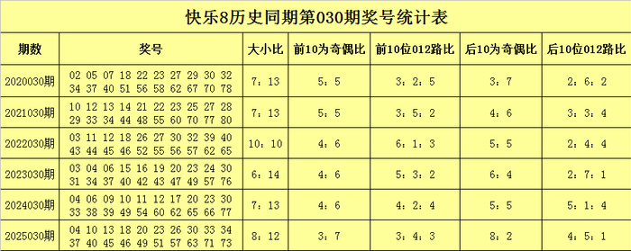 聂飞云历史同期快乐8第030期奖号分析