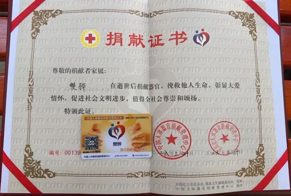 据悉,2018年樊骅确诊重病后,与病魔断然抵挡八年。在此时刻,他缄默立下捐献器官的心愿,直到病情急转直下,家东说念主才在其物品中不测发现遗体器官捐献志愿书。追悼之余,家东说念主尊重其意愿,首肯捐献心、肝、肺、双肾、角膜等七件器官,让生命以另一种神色陆续。