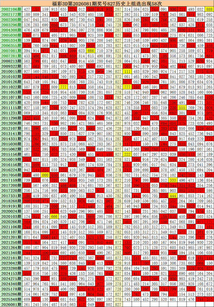 解密:最初,直选827开出之后,10期内开出豹子号0次,2003年-2026年在开出直选827之后,10期内组三累计出现55次,组三在曩昔第1-5期出现概率为94%,组三在曩昔5-10期出现的概率为88%。