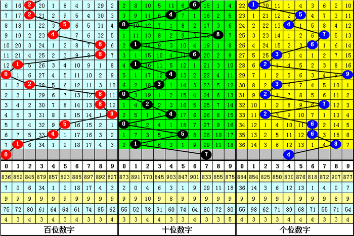 百位上期开出号码1,下落3点位,本期怜惜该位再次下落,参考号码0。