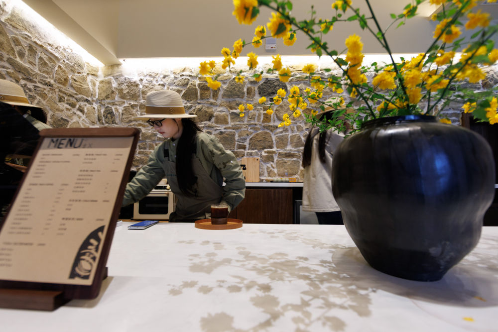 4月2日,贵州省毕节市百里杜鹃贬责区普底乡迎丰村脾气民宿内,责任主谈主员在制作咖啡。新华社记者 刘续 摄