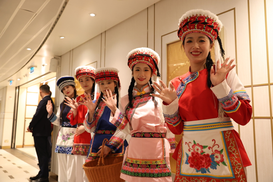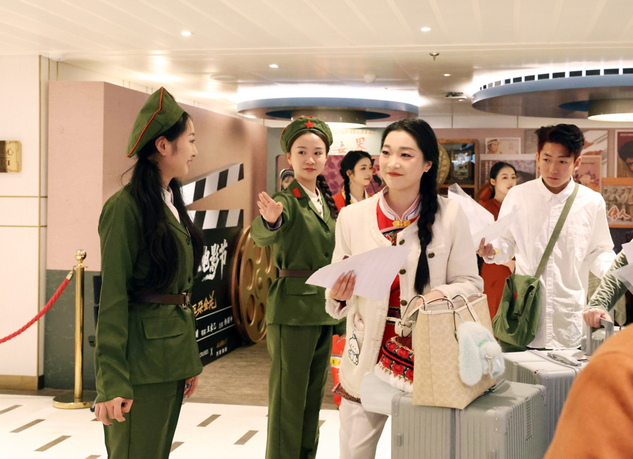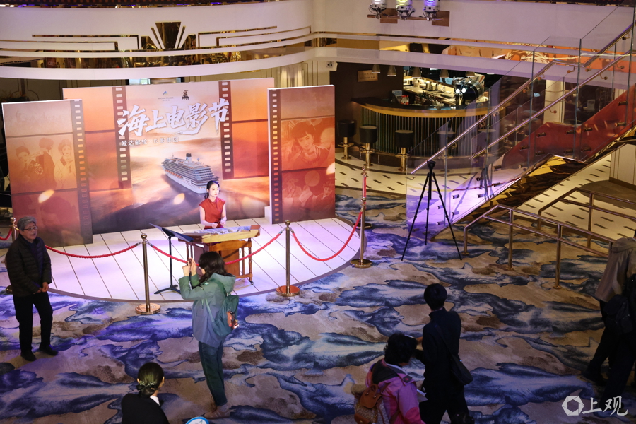 邮轮内,爱达剧院轮播《刘三姐》《冰山上的来客》《五朵金花》《守秘局的枪声》等经典影片。爱达广场等民众空间以经典电影东谈主物形象为灵感的千里浸式互动同步献技,达成电影艺术从银幕到实验的延长。