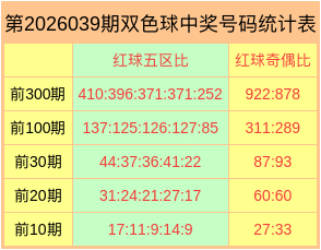 第2026039期双色球奖号数据统计表